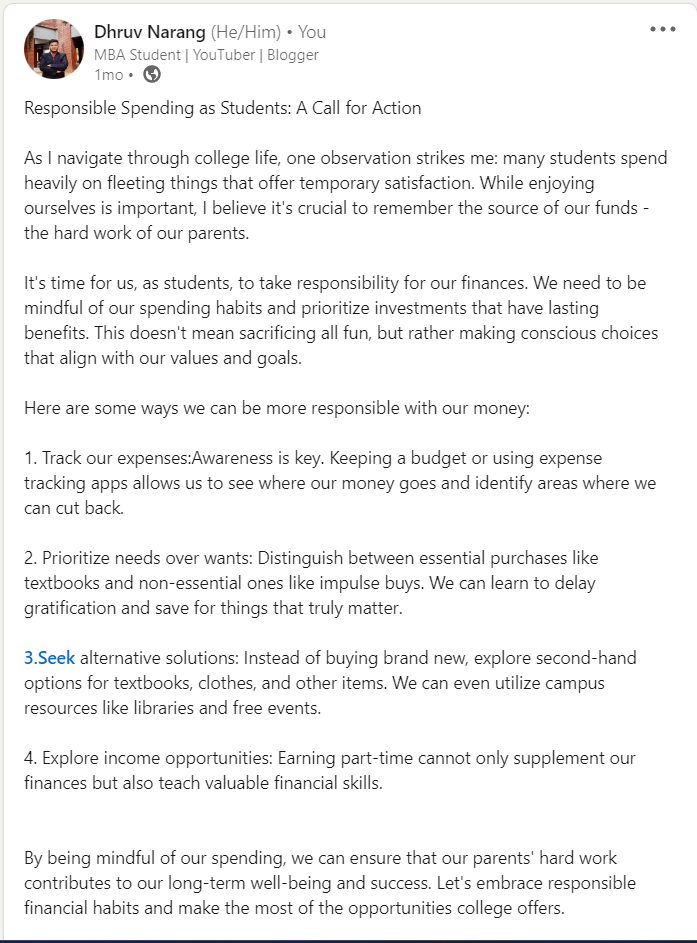 My name is Dhruv Narang, and I am currently pursuing an MBA at Chandigarh University. Recently, I realized that I have been spending thousands of rupees on fast food, which came as a shock to me. This is particularly surprising since, as a hosteller, I receive my morning breakfast, lunch, snack, and dinner here, and I don’t think the food provided is bad at all.